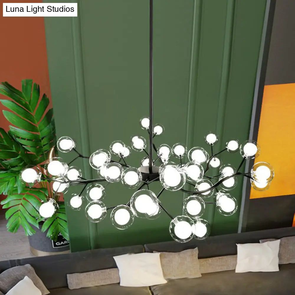 Black Metal LED Chandelier: Minimalistic Fireflies Ceiling Hang Light for Living Room
