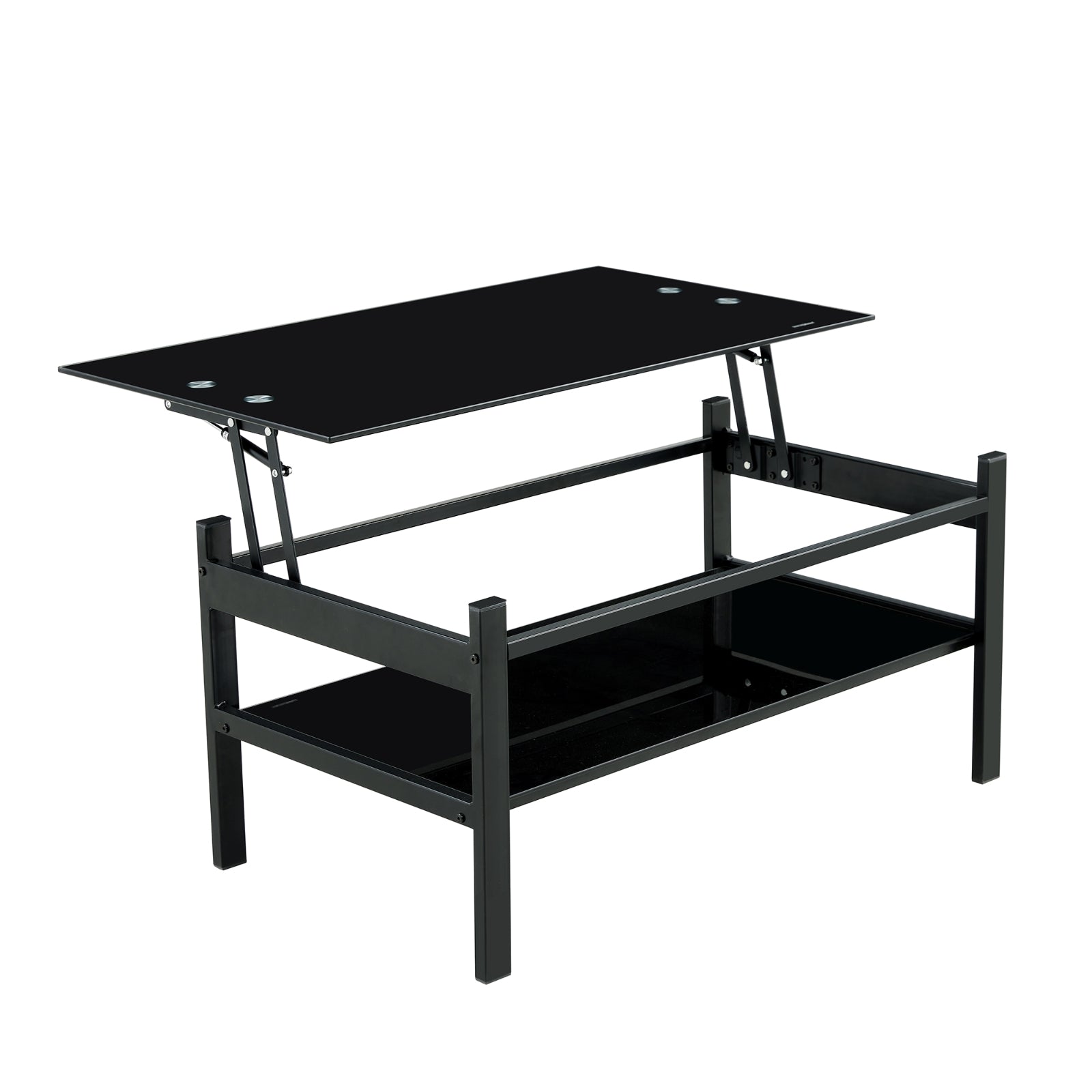 Glass Lift Top Coffee Table, 2-Layer Tempered Glass, Modern Simple, Black