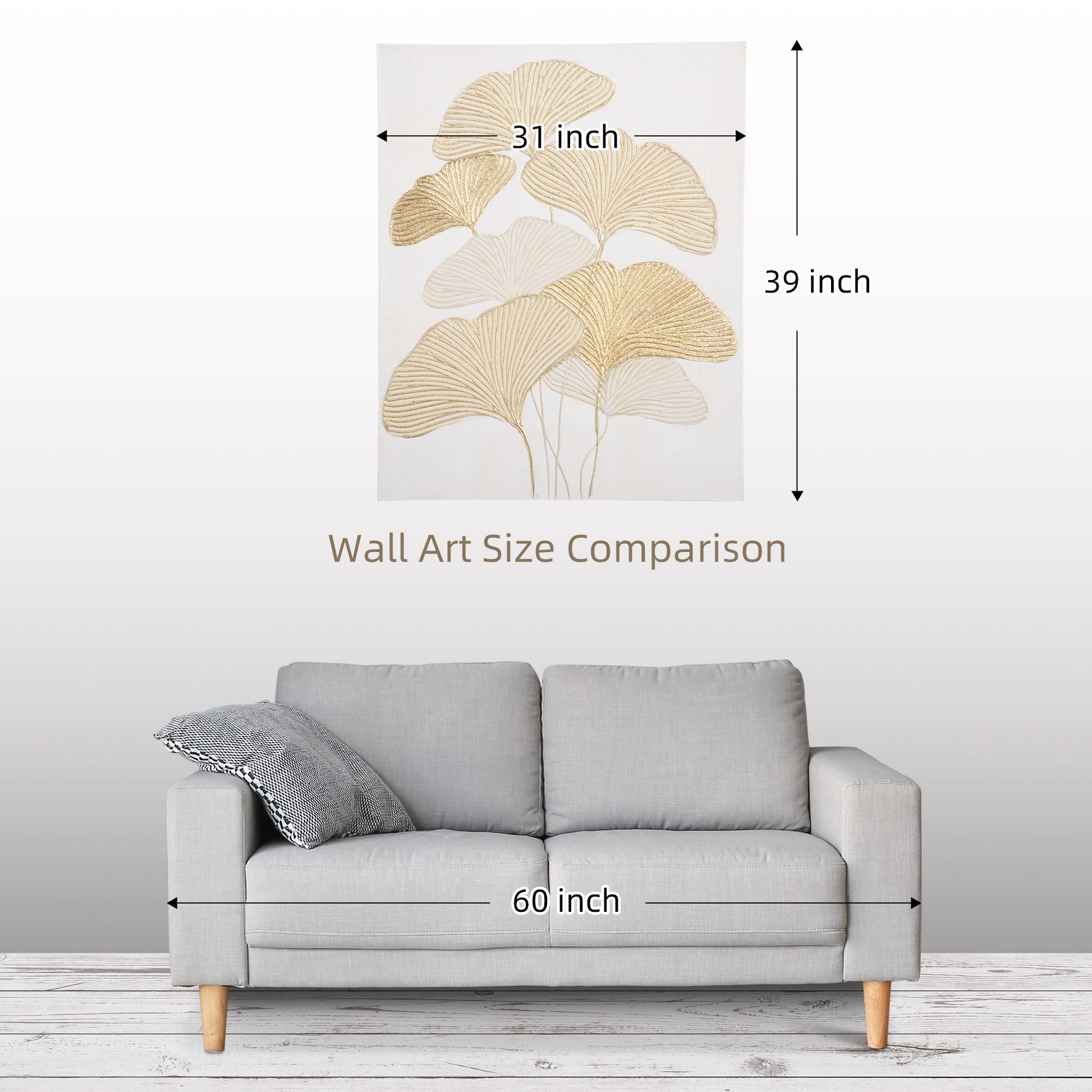 Want something to decorate your home? Our HOMCOM artwork for walls is what you need. It's also an ideal gift for housewarming, weddings, anniversaries, etc. Printed by professional artists with exclusive design brings a happy and sweet home. It comes with hooks and a hanging accessory toolkit delivered ready to use and with another home décor. Buy our living room wall art and make it brighten the walls of your home and relax you after work. Features: - Type: several gold ginkgo leaves - Handmade art, suitable for bedroom, living room, dining room, home office - Wrapped with canvas and pine wood frame for classic-looking - Ready to hang with hooks and hanging accessory toolkit - Vibrant color by water paint will last without fading - Could be a great gift for friends, partners, parents - Protected by paper corners, shrink wrap and bubble bag Specification: - Color: Gold - Material: Canvas (polyester), Pine Wood, Water Paint (propylene) - Overall Dimensions: 39.25" L x 31.5" W - Depth: 28 mm - Item Label: L00-014V02 Note: For monitor display issues, actual colors might slightly differ from our pictures. Package Includes: - 1 x Wall Art - 1 x Hanging Accessory Want something to decorate your home? It's also ideal for housewarming parties, weddings, anniversaries, or birthdays. Features: - Type: an African woman wearing a steric hat and a necklace with gold dust - Handmade art, suitable for bedroom, living room, dining room, home office - Wrapped with canvas and pine wood frame for classic-looking - Ready to hang with hooks and hanging accessory toolkit - Vibrant color by water paint will last without fading - Could be a great gift for friends, partners, parents - It will arrive in your hand as it should be, protected by paper corners, shrink wrap, bubble bag, and customized size box Specification: - Color: Gold, Grey - Material: Canvas(polyester), Pine Wood, Water Paint (propylene) - Overall Dimensions: 39.25" L x 31.5"W - Thickness: 28 mm - Item Label: L00-012 Note: For monitor display issues, actual colors might slightly differ from our pictures. Our HOMCOM wall decorations are what you need. Printed by hand with exclusive design, it brings a feeling of being attractive and individual. It comes with hooks, and a hanging accessory toolkit is delivered ready to use and goes well with another home décor. Buy our metal art wall decor and make it brighten the walls of your home. Features: - Two-piece set, type: deep grey and light grey lotus leaves - Hand-painted design for exquisite appearance and shiny - Ready to hang with hooks and hanging accessory toolkit - Suitable for bathroom, living room, bedroom, dining room, hallway - Could be an excellent gift for friends, partners, and parents Specification: - Color: Multi-Color - Material: Metal - Overall Dimensions: 19.75" W x 31.5" H - Depth: 40 mm - Item Label: 830-502V00MX Package Includes: - 1 x Metal Wall Decor - 1 x Hanging Accessory.