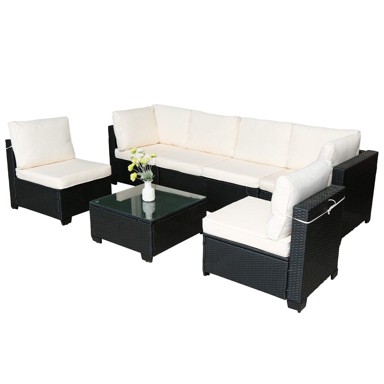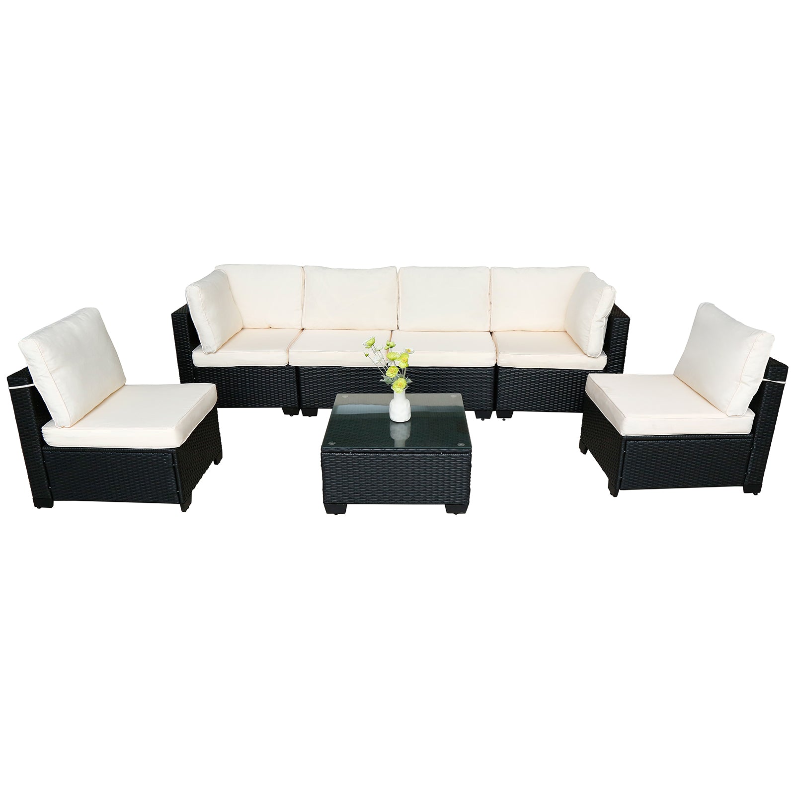 Product Name:Seven-Piece Sofa Set Table With Sofa Chair Black PE Rattan Outdoor Furniture 7-JH002 Box 3-1-2-3 With Beige Color Cushion