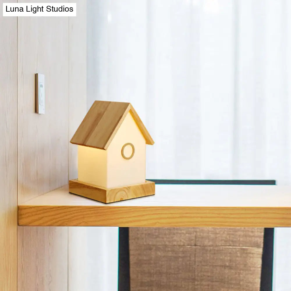 Countryside Glass Table Lamp with Opaque Shade - 1 Bulb Wood Nightstand Light for Bedside