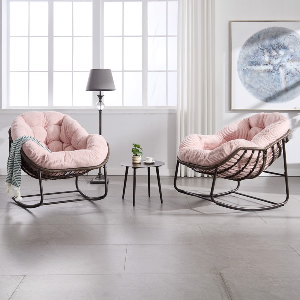 Our rattan chairs are meticulously hand-woven with high-quality synthetic rattan material, the rattan is not easy to fade and durable. Enjoy the sunbathe with our oversized rocking chair and it will bring you a different experience.