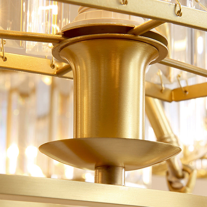 This Polished Brass Round Chandelier Lighting Fixture with 15" Adjustable Cord, Modern, Clear Crystal Pendant makes for an attractive centerpiece in any room. Along with its Gold color, it is sure to add a touch of luxury to your living space. Its unique and modern style makes this the perfect product to have in any home.