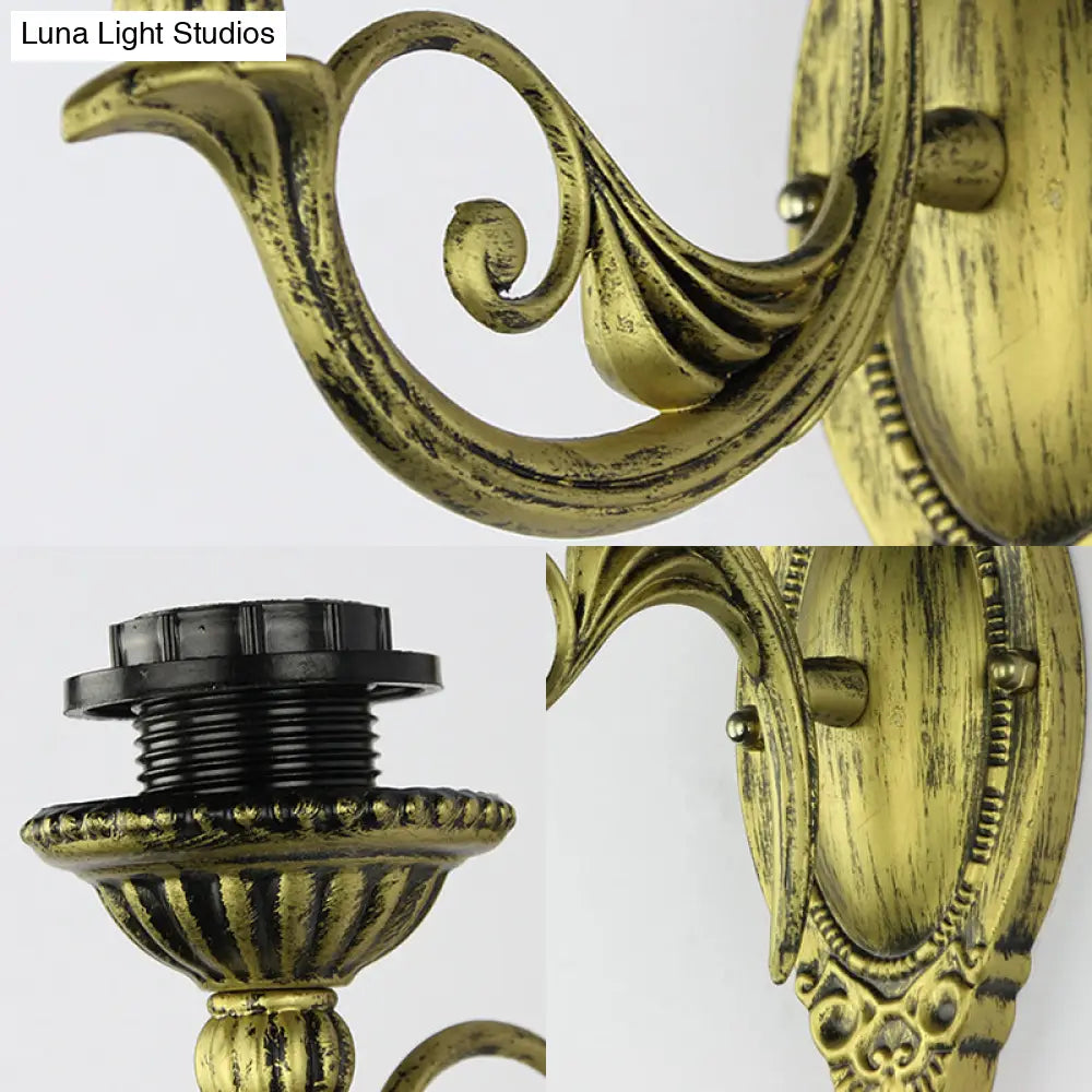 Country Style Shell Global Sconce Light - Curved Arm Wall Mount in Beige/Beige-Red - Bedroom Lighting