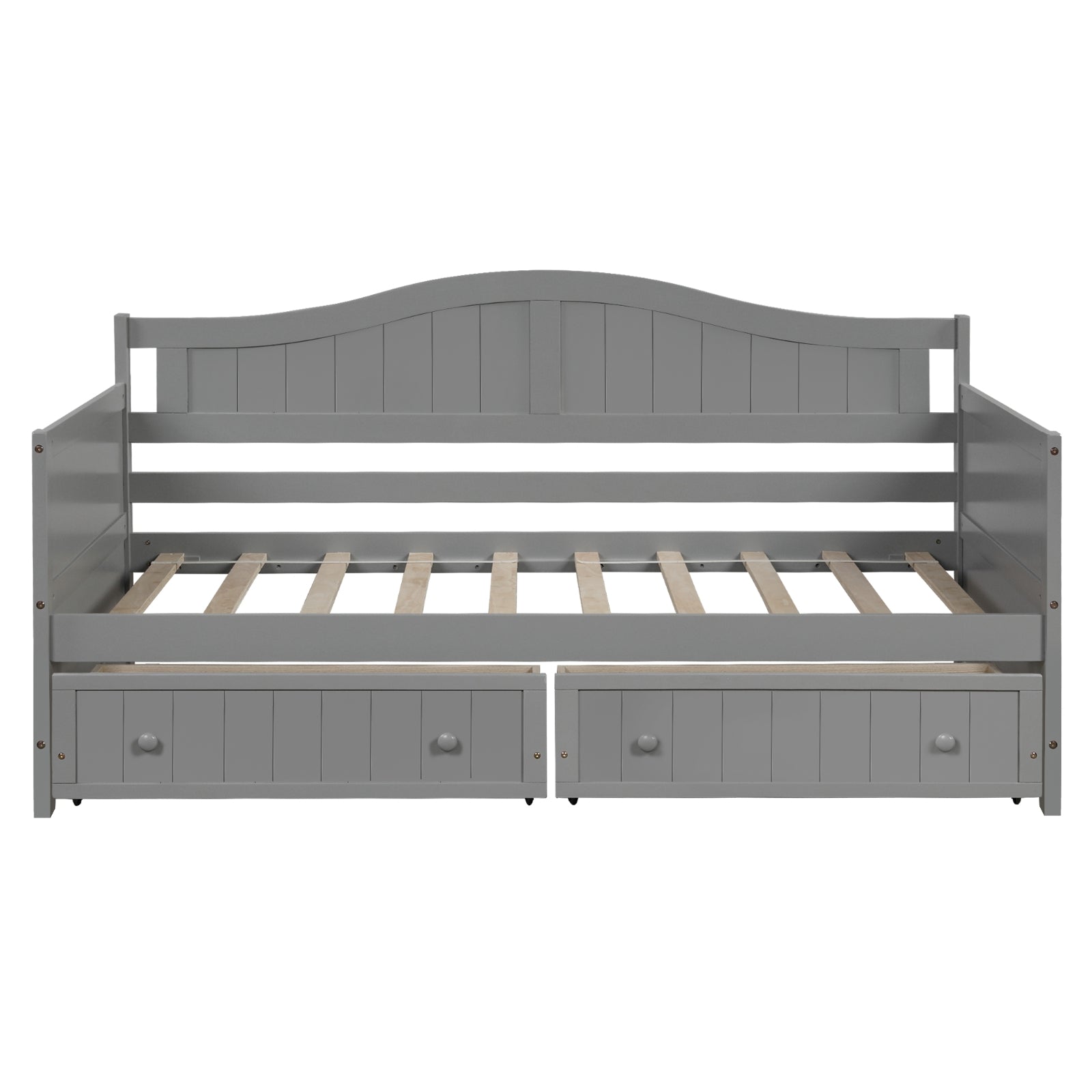 Twin Wooden Daybed With 2 Drawers, Sofa Bed, No Box Spring Needed - Gray